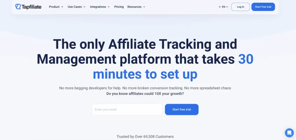 | Agile & White-Label | B2B SaaS, Subscriptions, Lean eCommerce | Flat fee pricing, fast setup, no override tax | You must recruit your own affiliates manually | Tapfiliate |
