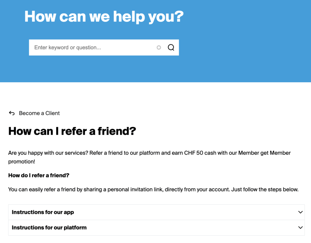 A empresa oferece um programa de referência no qual membros existentes podem compartilhar links de referência pessoais com amigos para receber um desconto de 25% na adesão. Se eles recrutarem com sucesso um novo membro para a plataforma, receberão dois meses gratuitos.