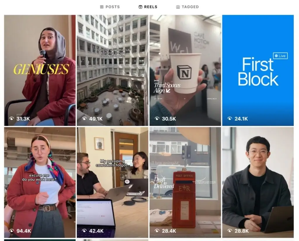 Example: @notionhq nails this. They overlay bold, readable captions in every Reel, which not only helps silent scrollers stay engaged but also makes their how-to videos more accessible to non-native speakers and viewers with hearing impairments.