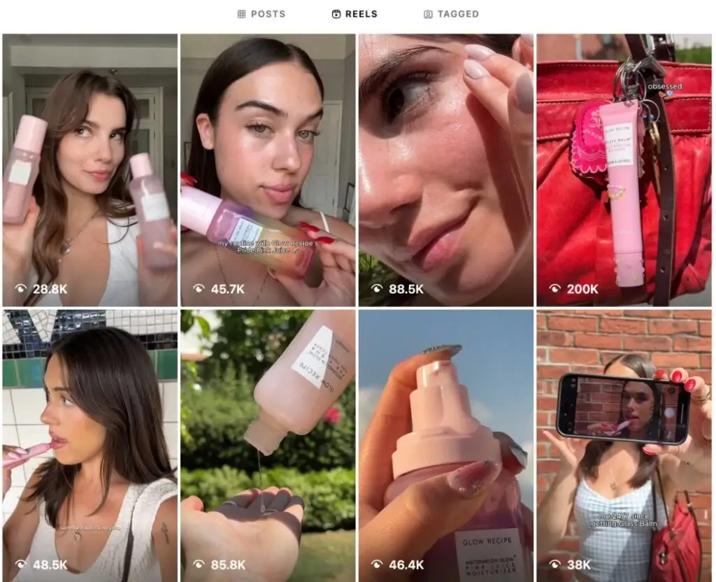 Example: @glowrecipe keeps it simple: bright natural light, clean product shots, and snappy editing — even when it’s filmed on an iPhone. No overproduction, just high-quality, brand-aligned visuals that make you want to pause and watch.