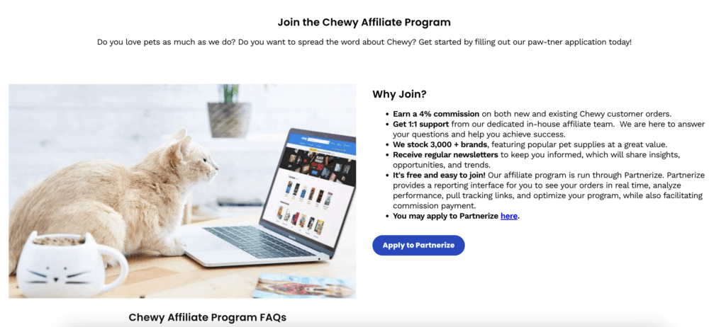 They sell a wide variety of pet products across 2,000 different brands, which garners them a ton of traffic. Still, their commission rate isn’t competitive compared to others on our list, — but they do reach larger audiences.