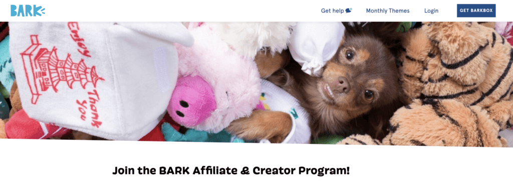 Barkbox is a pet subscription service that caters specifically to dogs — food, treats, accessories, dental products, and more. The platform offers flat-fee commissions depending on the tier of the subscription plan purchased. Amounts range from $18 to $20 per sign-up, plus a 10% commission per food sale.