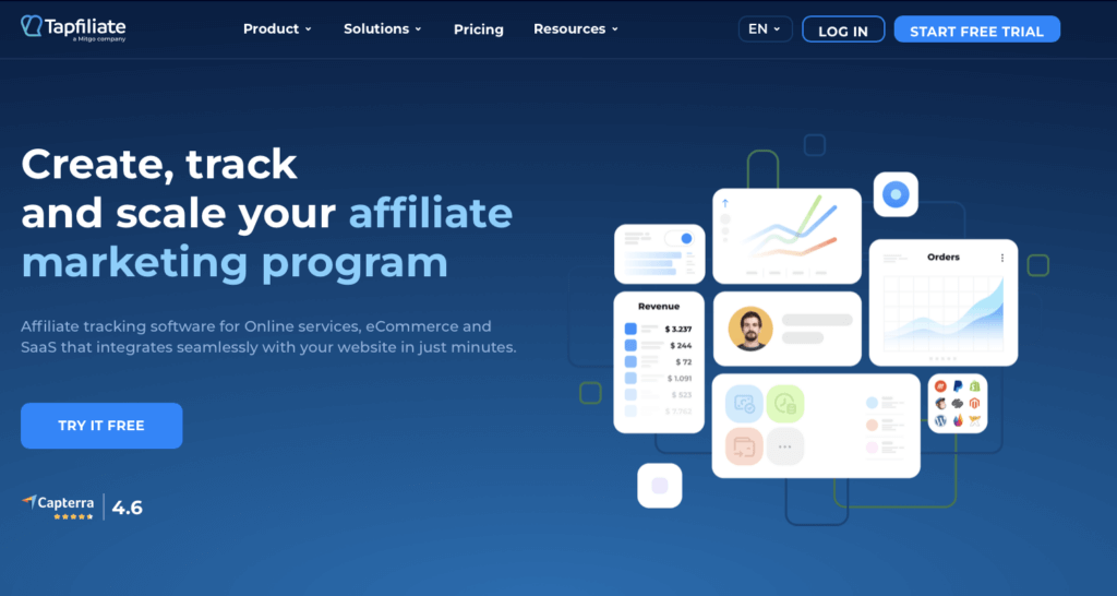 Tapfiliate is a great affiliate tracking software that helps brands stay on top of their affiliate program’s performance, sales, and commission with accurate and helpful analyses and reports.